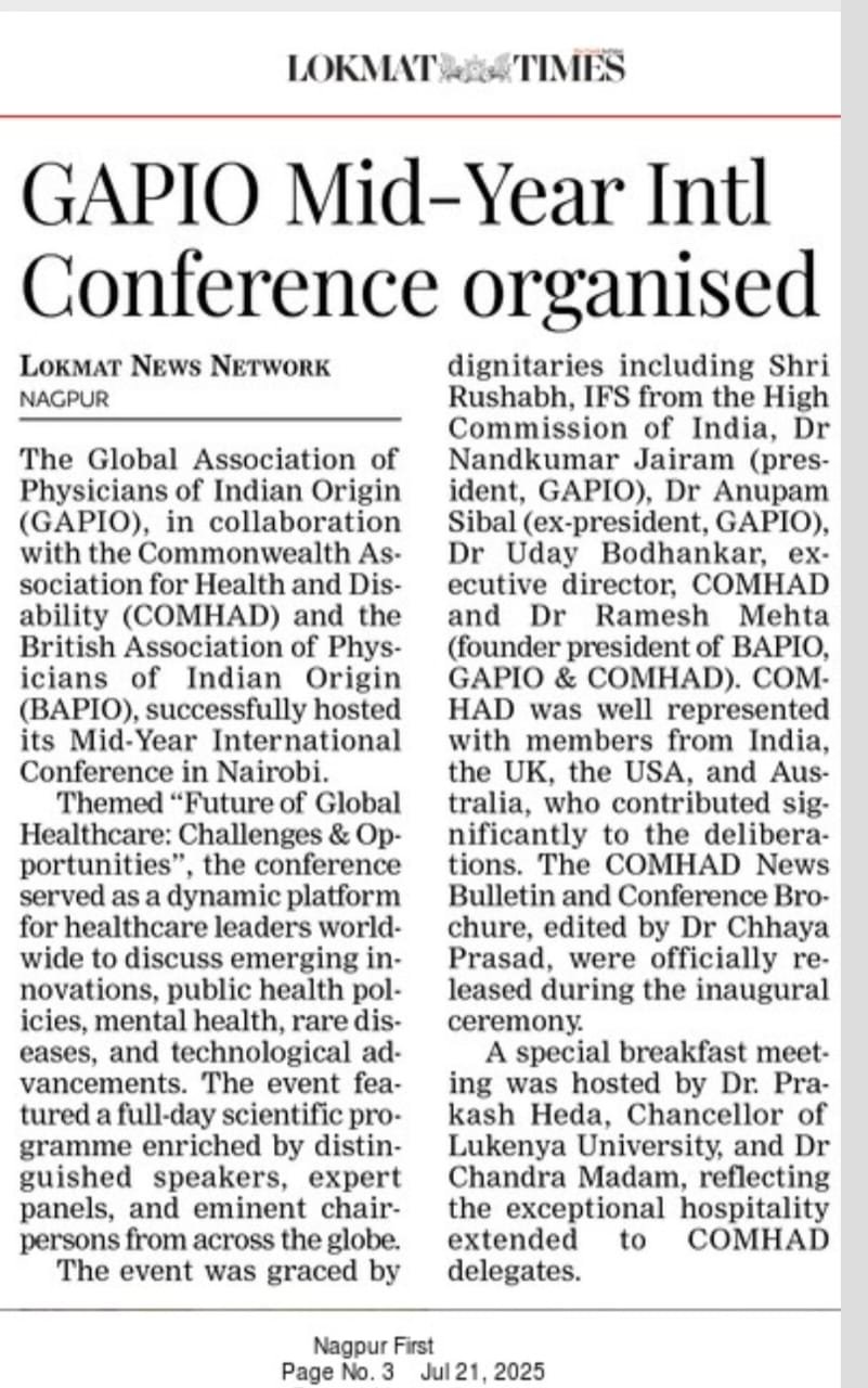 January 16, 2023GAPIO MID-YEAR INTERNATIONAL CONFERENCE In Association with COMHAD and BAPIO📍 Nairobi, Kenya | 18th July 2025